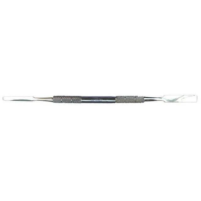 A double ended spatula for mixing Akzéntz gels. A wide end for Pro-Formance, Options® and Gel Play jars, and a narrow end to perfectly slip inside a Luxio® bottle.